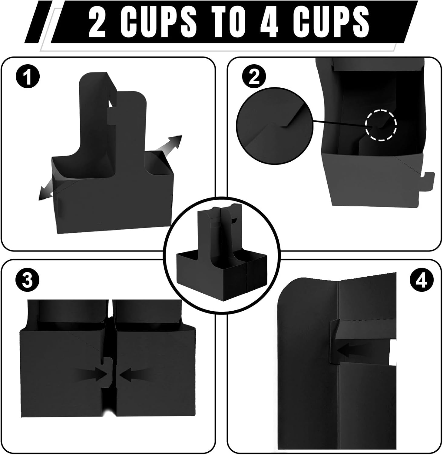 - 【Value Pack of 50】Includes 50 disposable paper cup holders in black and pink color options. Ideal for coffee shops, events, food delivery, or to-go services. A reliable solution for small businesses or large gatherings needing bulk drink carrier support